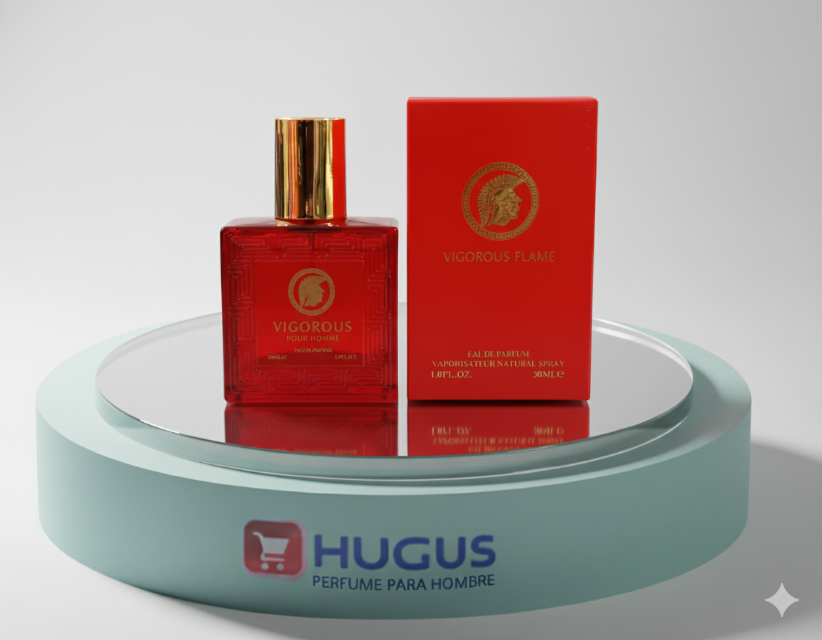 El perfume masculino Lovali Vigorous Flame EDP 100 ml es una fragancia amaderada especiada que irradia fuerza y sofisticación. Su salida combina limón, pimienta negra y romero, dando paso a un corazón de pimienta, geranio y rosa. El fondo de vainilla, haba tonka, sándalo, cedro y pachulí aporta calidez y profundidad. Ideal para el hombre seguro y elegante que busca un aroma intenso y duradero.